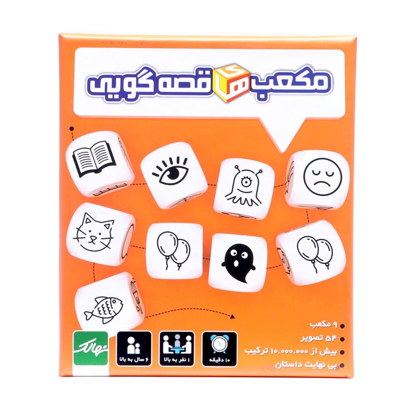 مکعب‌های قصه‌گویی مجموعه‌ای شامل ۹ تاس است که روی هر وجه از آن‌ها تصویر متفاوتی نقش بسته است. با کمک این ۹ تاس و با ورد جادویی «یکی بود، یکی نبود ...» دریچه‌ای از دنیایی پر از  تخیل و خلاقیت به روی شما گشوده می‌شود. با مکعب‌های قصه‌گویی می‌توان به روش‌های بسیار گوناگونی بازی کرد و بر توانش زبانی، دایره‌ی واژگان، قدرت قصه‌گویی و بیان احساسات خود افزود. این بازی علاوه بر ایجاد فرصتی شاد و مفرح برای دورهمی‌های خانوادگی، می‌تواند در کلاس‌های انشاء و همچنین جلسات درمانی اختلالات گفتاری و عاطفی مورد استفاده قرار گیرد.