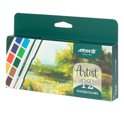 آبرنگ 12 رنگ جعبه مقوایی آریا آرتیست