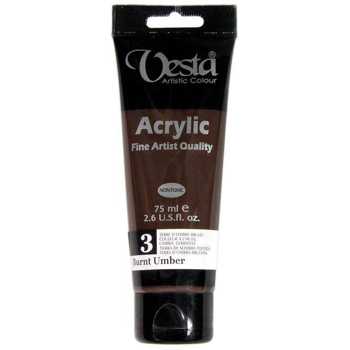 رنگ اکریلیک وستا کد ۳ (Burnt Umber) حجم 75 میلی لیتر