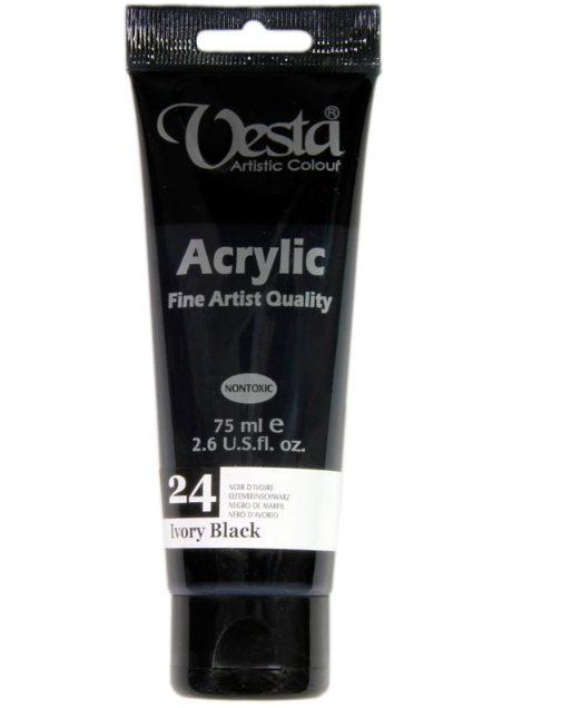 رنگ اکریلیک وستا کد ۲۴ (Ivory Black) حجم 75 میلی لیتر
