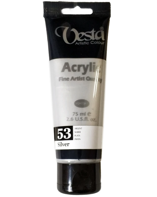 رنگ اکریلیک متالیک وستا کد53 (Silver) حجم 75 میلی لیتر