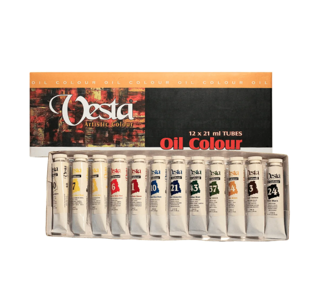 ست ۱۲ رنگ روغن وستا با حجم ۲۱ ml برای هر تیوپ، یک پک کامل برای نقاشان مبتدی تا حرفه‌ایه. رنگدانه‌ها در این ست غلیظ و با کیفیت هستن، که روی بوم پوشش خوبی می‌دن و اجرای تکنیک‌های مختلف رنگ روغن رو راحت‌تر می‌کنن. پیگمنت‌های باکیفیت باعث می‌شن رنگ‌ها شفاف، قابل ترکیب و پایدار باشن، بنابراین برای تمرین، کلاس و حتی آثار جدی مناسبند.