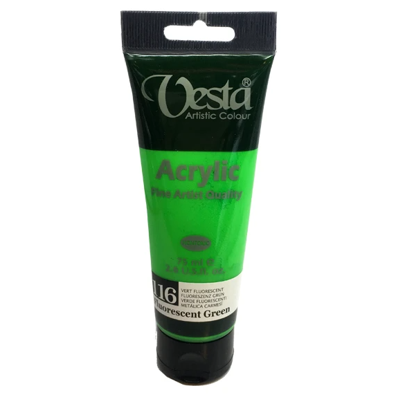 رنگ اکریلیک وستا کد flourescent green) 116) حجم 75 میلی لیتر